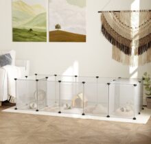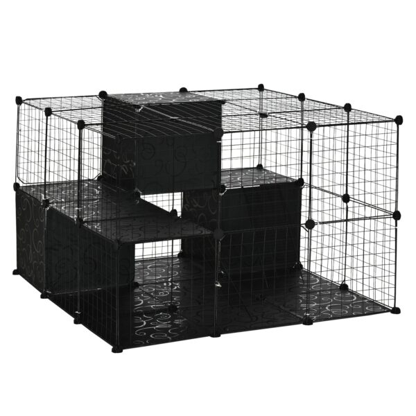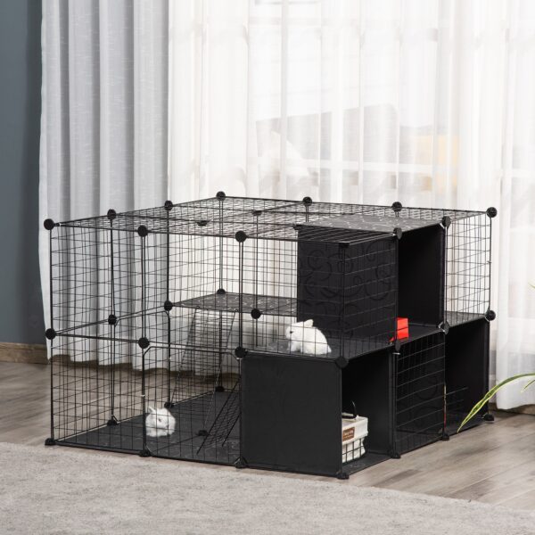 Give your pet a place of their own to rest and play with the Catface cage for small animals! The pet cage provides ample living and playing space for your pets to run around. The DIY design lets you create a cage for small animals and a storage rack. The pet playpen is made with metal wire to allow fresh air to pass through and keep your pet comfortable. Make transporting your pet and replenishing their food and water a breeze with 3 large doors on the cage. Suitable for rabbits, chinchillas and pet minks.