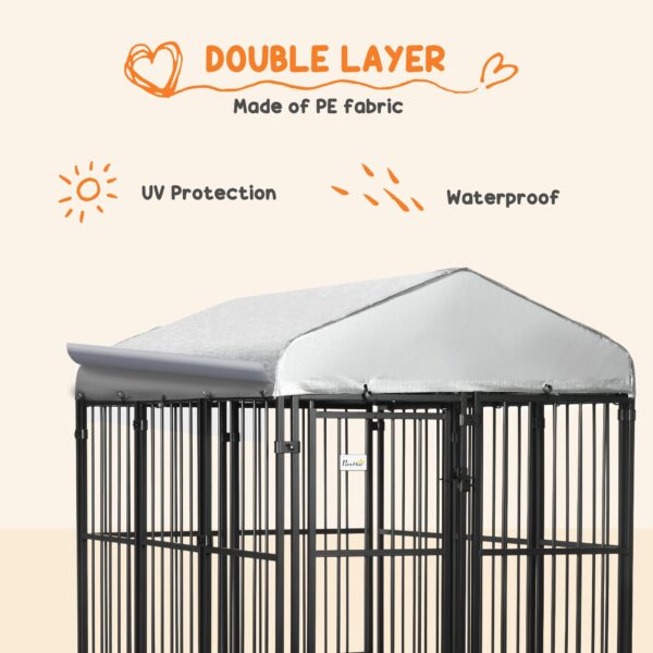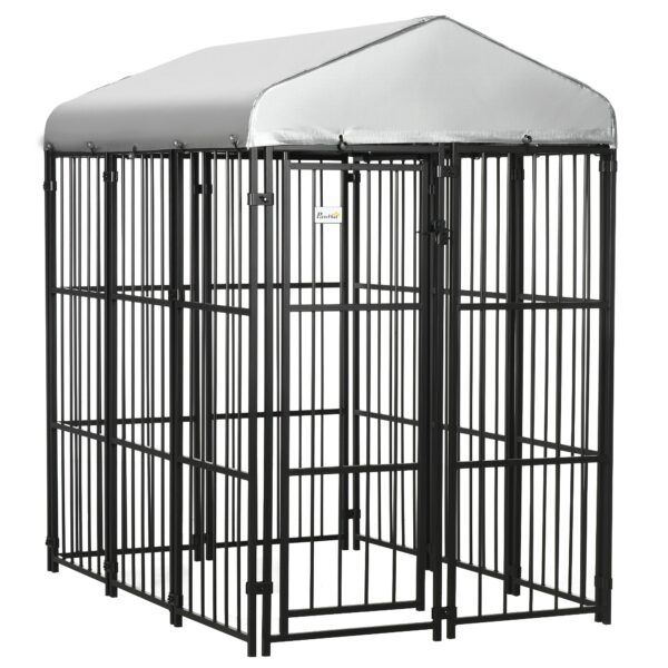 • Heavy-Duty Steel: The steel railings of this outdoor dog kennel have no sharp edges that could hurt your pets. They’re heavy-duty enough to be bite-proof and sprayed to help them endure the outdoors.